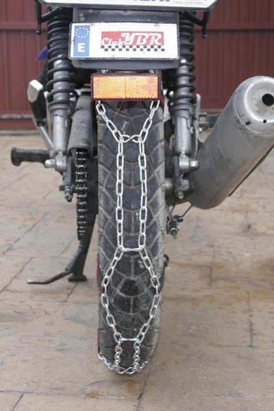 Es la primera moto que veo con cadenas, y como no, tenía que ser una YBR :salud: