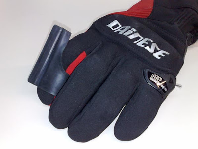Copiado (más o menos) en un guante que uso poco. Está pegado con cianocrilato ("locktite gel", o algo así) y mantiene buena flexibilidad.
